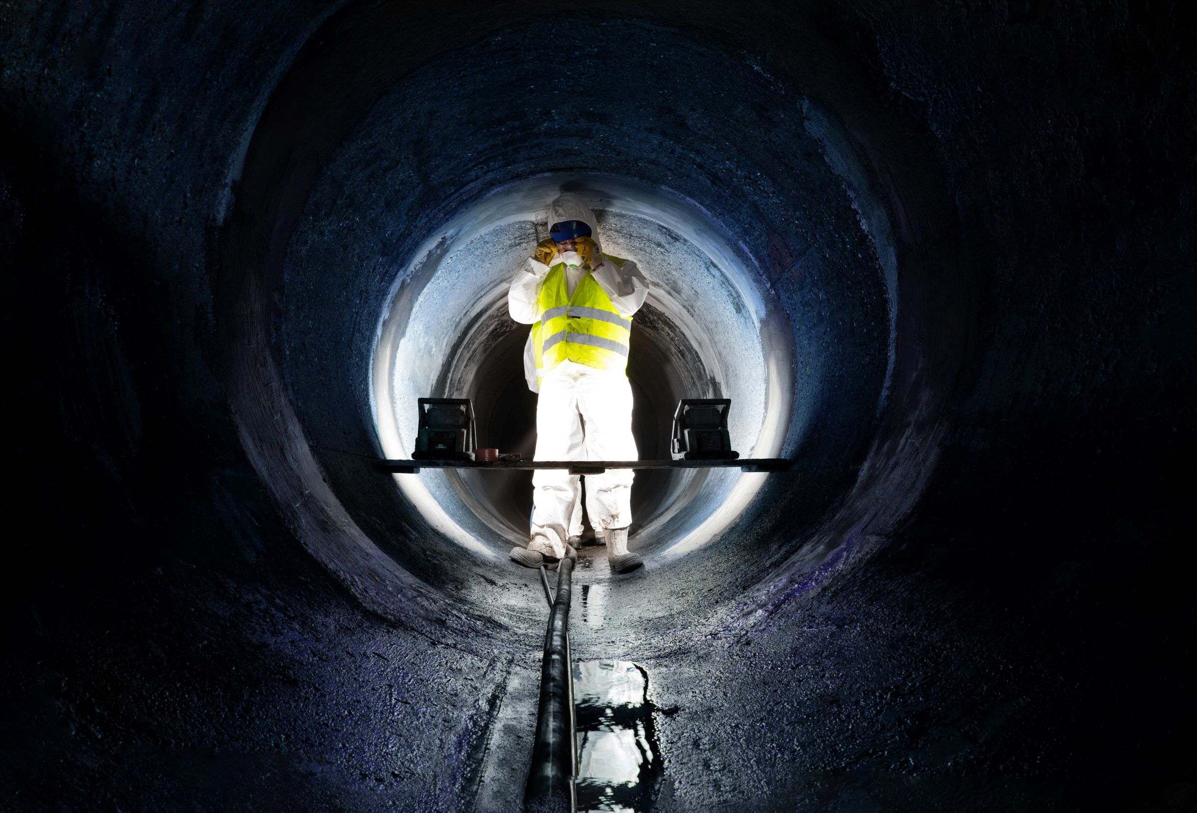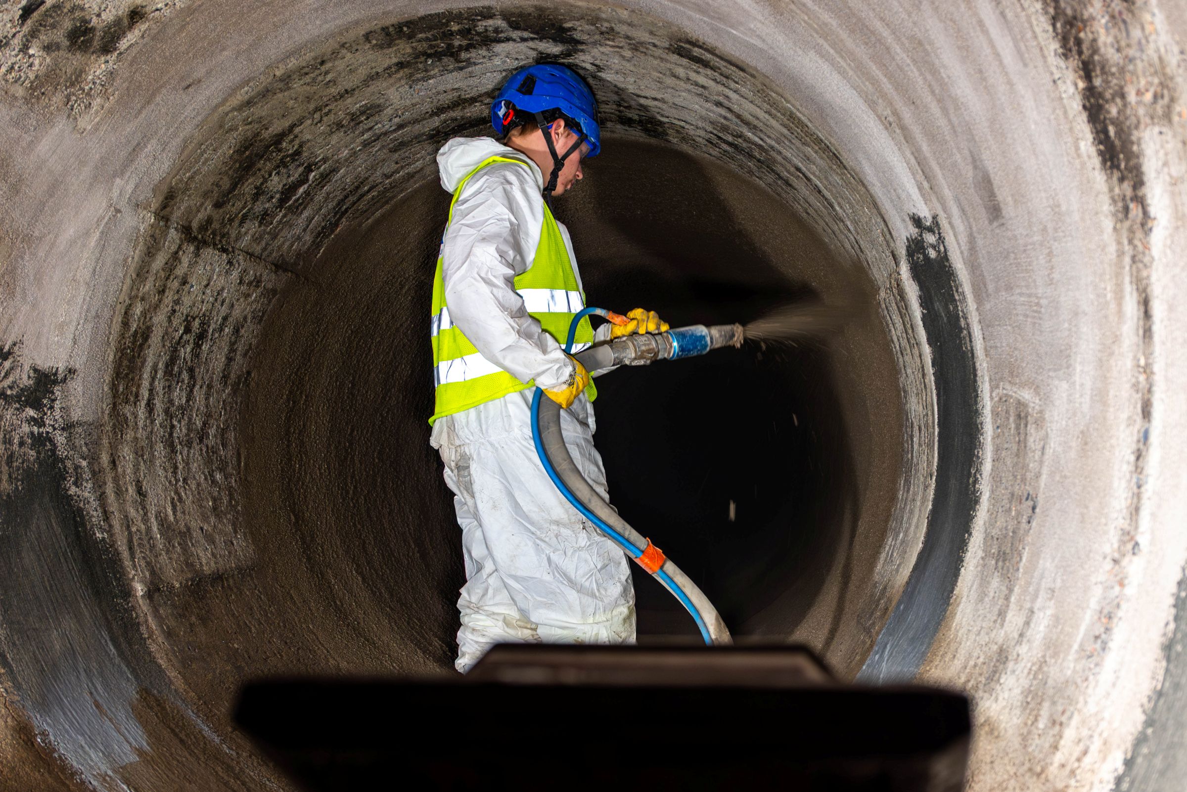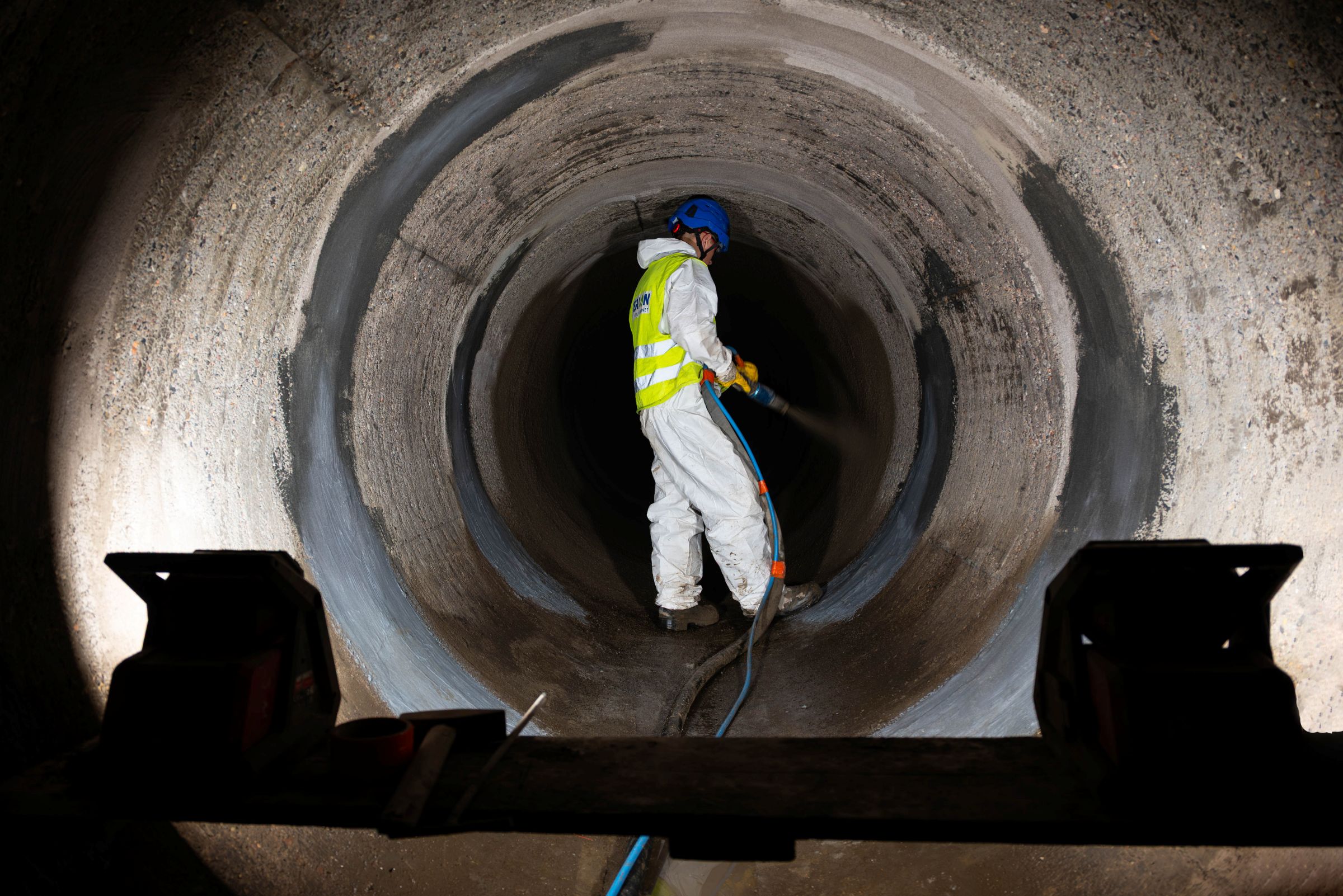 Podczas natrysku kolektora o średnicach DN1400, DN1500 oraz DN1800 zużyliśmy niemal 200 ton konstrukcyjnej zaprawy zasadniczej. Łączna długość wszystkich odcinków, które poddaliśmy renowacji wynosi 1,1 km. Całość prac została wykonana bezwykopowo, zachowując ruch pieszo-rowerowy na alejkach wokół jeziora. Jedyną ingerencją