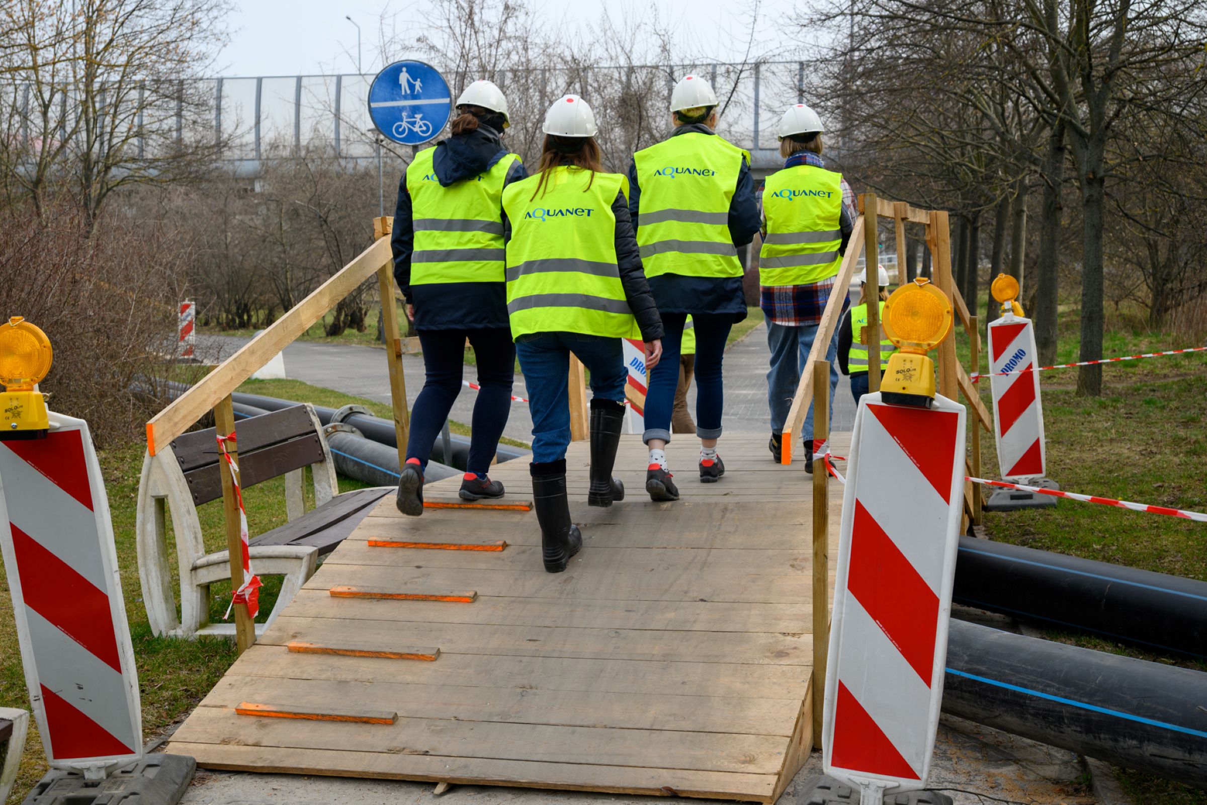 Przy okazji prowadzenia prac budowlanych zwracamy również szczególną uwagę na stronę społeczną. Zabezpieczyliśmy wybieg dla psów, który znajduje się bezpośrednio przy bypassie ściekowym. Zainstalowaliśmy kładki dla pieszych i rowerzystów nad bypassem. Wykonaliśmy tymczasową drogę betonową. Po zakończeniu prac droga zostanie zlikwidowana, a na jej miejsce powróci trawa. Bezpieczeństwo mieszkańców, zwierząt i środowiska pozostaje priorytetem.